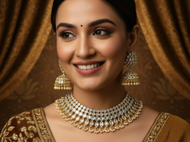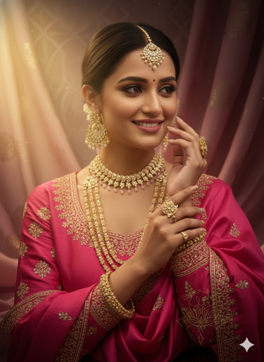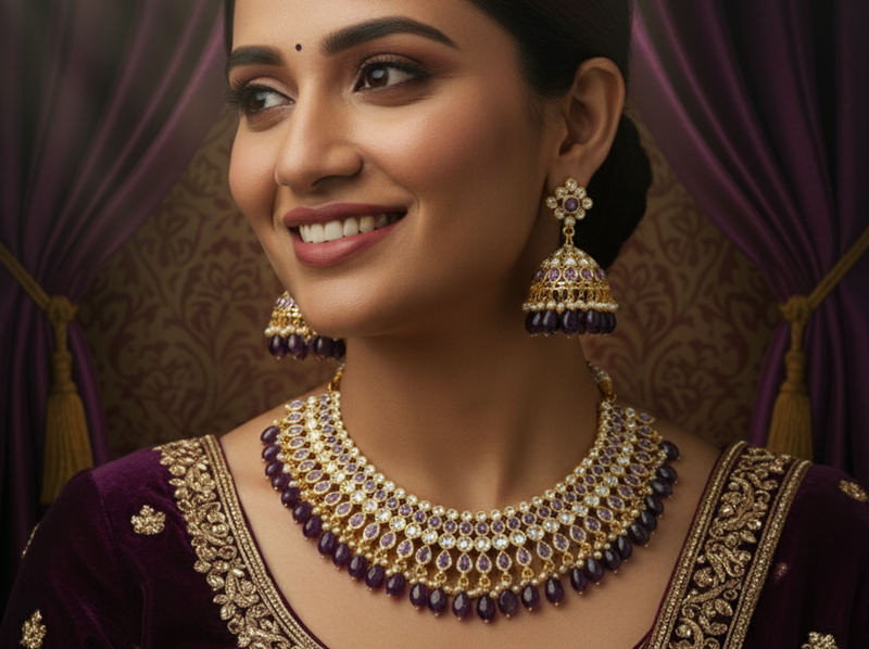Explore our stunning assortment of heavy bridal sets, elaborate temple jewelry, and chic modern pieces that add a touch of glamour to any outfit.
